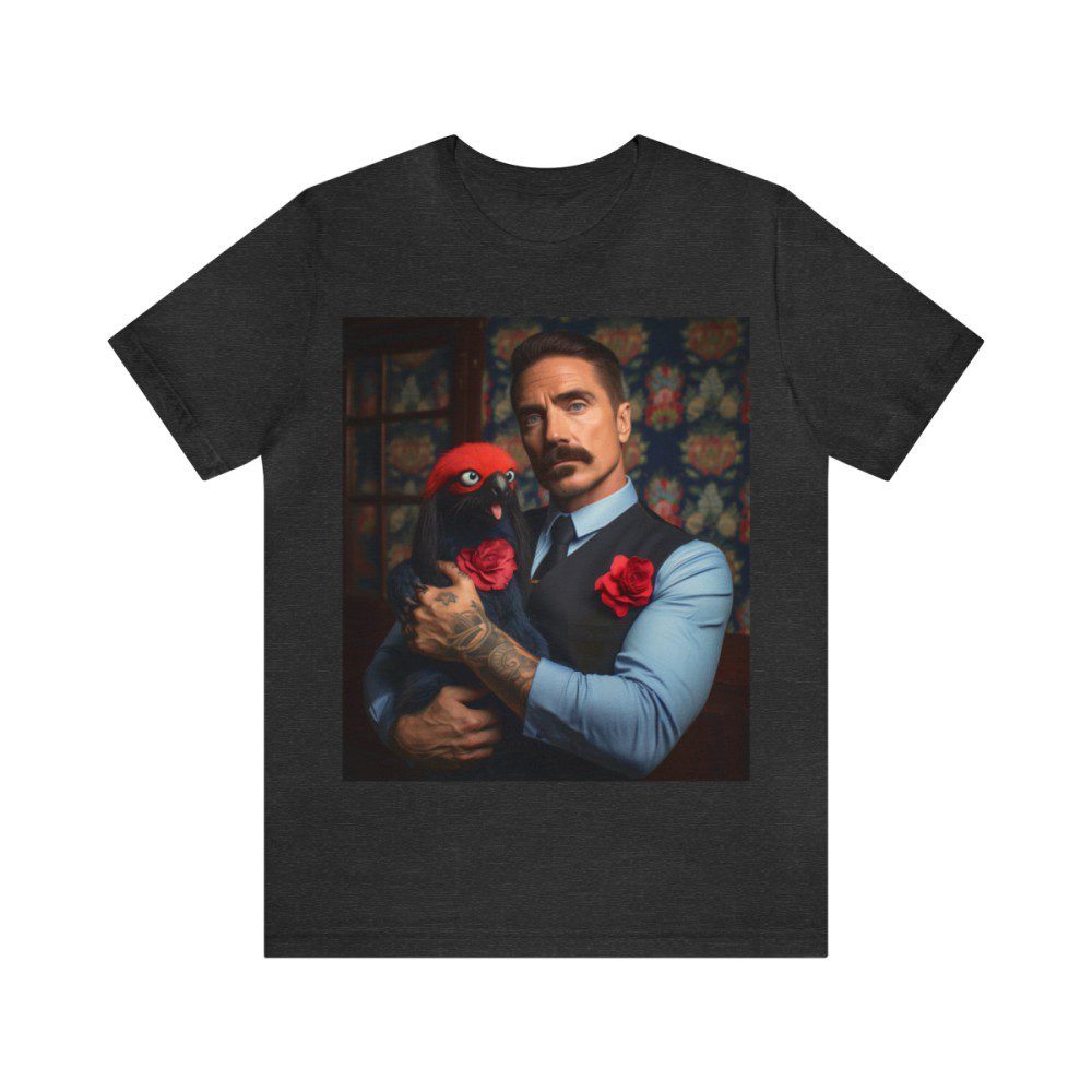 Known for his unrivaled charm and meticulous attention to detail, Amauris, the world renowned puppeteer, is shown in this captivating portrait. With his expressive “parrot sloth dog” puppet playfully perched on his hand, Amauris’s eclectic style and storytelling prowess are obvious. Amauris doesn’t exist, of course, but people will definitely be asking about who’s on your shirt. — Feel free to make up a story about the greatest show you saw in Vegas!