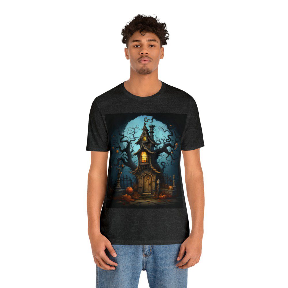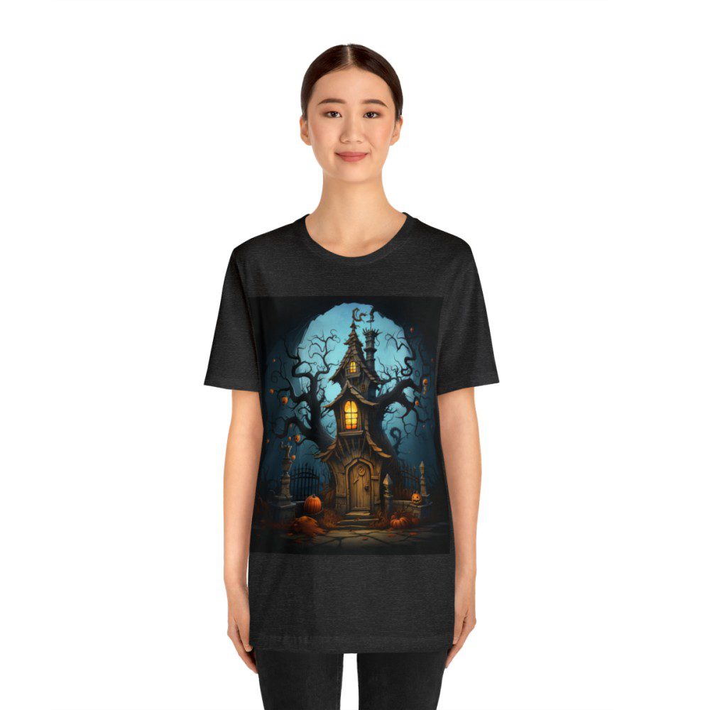 Playful, cute, and spooky all at once, this house in a tree trunk has pumpkin bird houses on its barren limbs. A jack-o-lantern sits near the entrance and a curious inhabitant, no doubt, resides inside.
