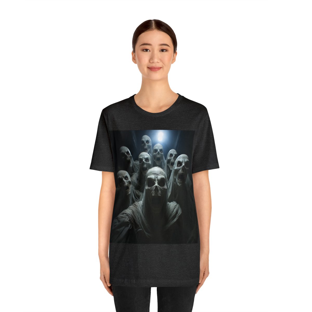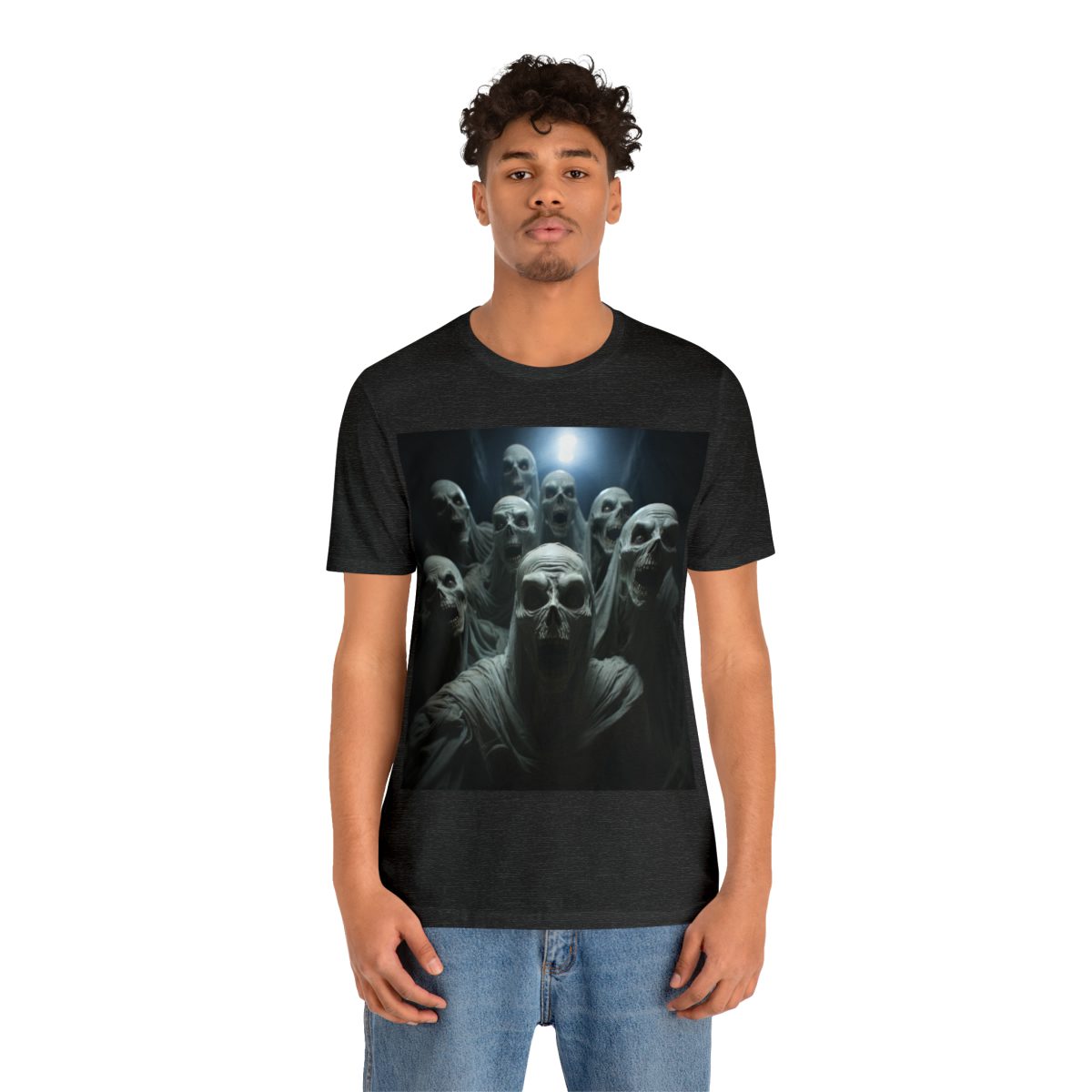 In the depths of a pitch-black chamber, a gathering of white skeleton creatures stare towards you, eerily. Bathed in a dim, foreboding light, their bony figures loom large, filling the one exit ahead. You can discern their jagged skulls covered in a wrinkly skin, mouths agape in a silent, eternal scream, and you wonder if you’ll make it out alive!